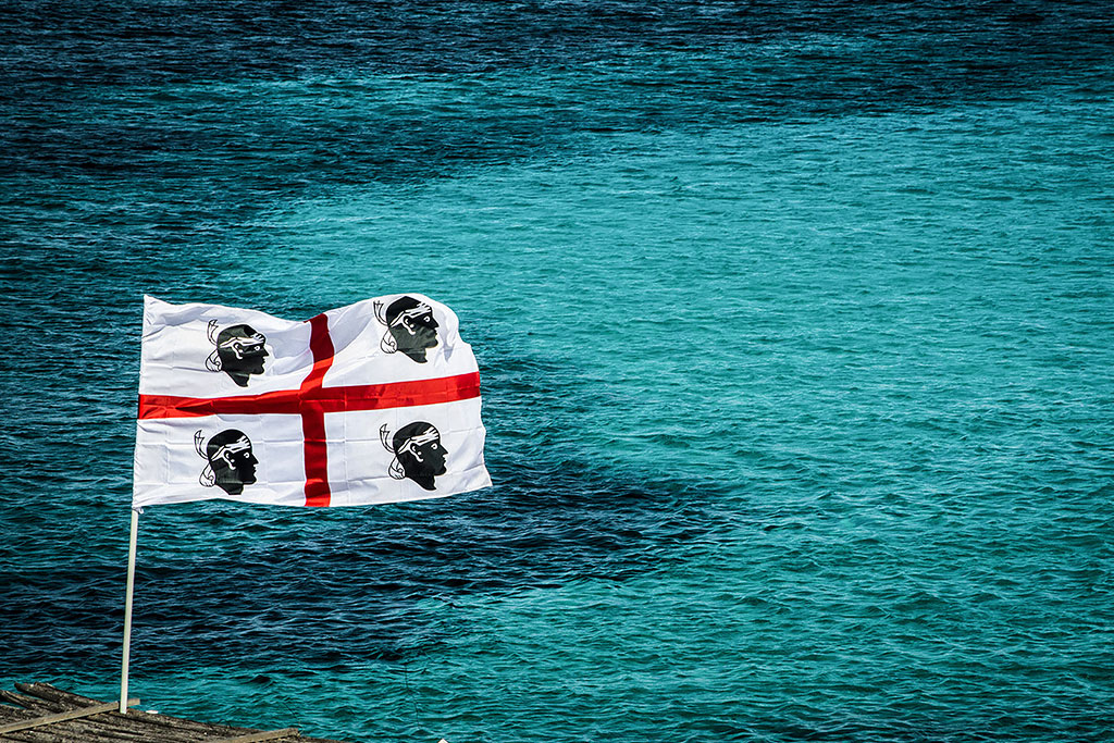 Sardiniens Fahne hat einen Namen – la Bandiera dei quattro Mori. Die Sardinien Flagge zeigt ein rotes Kreuz auf weißem Grund. Dieses Kreuz wird auch als Georgskreuz bezeichnet. Sardiniens Fahne bildet die “Die vier Mauren” ab. Jeweils ein enthaupteter Maurenkopf befindet sich in einem Viertel der Flagge.