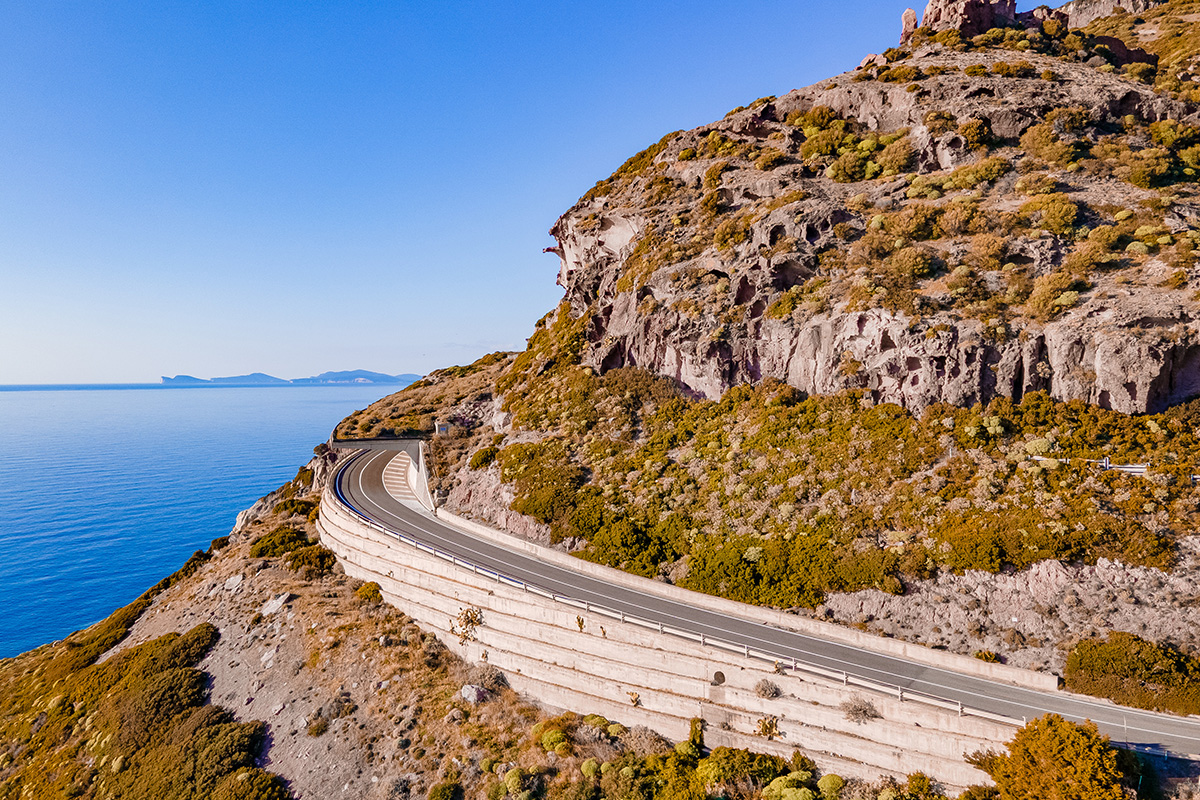 Das Capo Caccia im Norden der Riviera del Corallo zählt zu Sardiniens Höhepunkten in Sachen Natur. Hier stürzen Kalkfelsen beinahe senkrecht 200 Meter ins Meer. Sie sind außerdem von Höhlen (Tropfsteinhöhlen) und Grotten durchzogen.