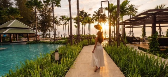 In der Region Khao Lak direkt am weitläufigen Sandstrand begrüßt sie das im traditionell thailändischen Stil gehaltene Hotel Grand Mercure Khaolak Bangsak. Die Highlight des Hotels sind die wunderschöne Architektur mit traditionellen Materialien, ein großer Poolbereich mit tropischer Bepflanzung und großzügig geschnittene Zimmer. Im Wellnessbereich warten eine Vielzahl an Behandlungen auf Sie und für thailändische sowie internationale Kulinarik ist bestens gesorgt. In der Umgebung können Sie eine Vielzahl von Ausflügen unternehmen, zum Beispiel in Nationalparks mit naturbelassenen Landschaften und Wasserfällen oder jahrhundertealten buddhistischen Tempeln.