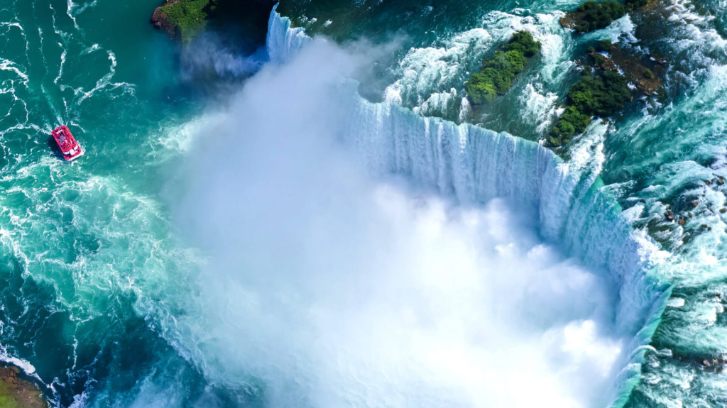 Die Niagara Fälle gehören zu den beeindruckendsten Naturwundern der Erde. An der Grenze zwischen dem US-amerikanischen Bundesstaat New York und der kanadischen Provinz Ontario gelegen, erstrecken sich die massiven Wasserfälle.